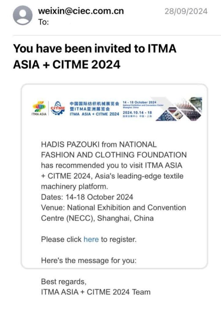 بنیاد ملی مد و لباس ایران مفتخر است اعلام کند که دعوتنامهای از طرف نمایشگاه بینالمللی ITMA ASIA + CITME 2024 که از بزرگترین رویدادهای صنعت نساجی و پوشاک جهان به شمار میرود، دریافت کرده است. این نمایشگاه قرار است در 14تا 18 اکتبر در شهر شانگهای چین برگزار شود و فرصت بینظیری برای معرفی طرحهای ایرانی در سطح جهانی فراهم خواهد کرد.